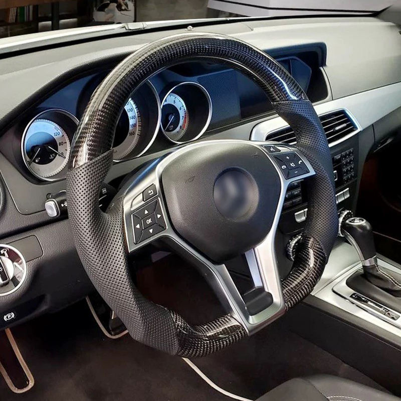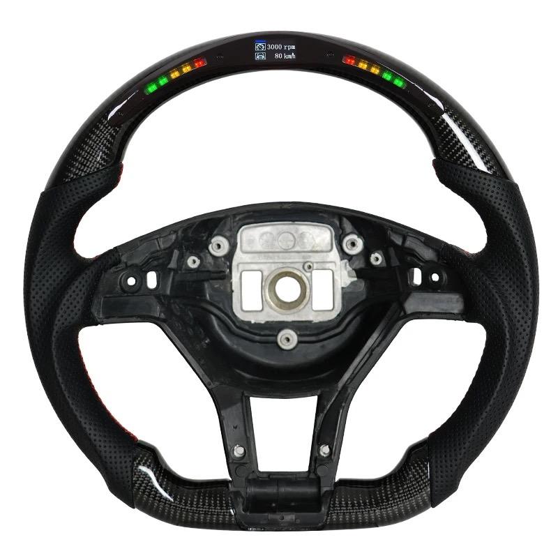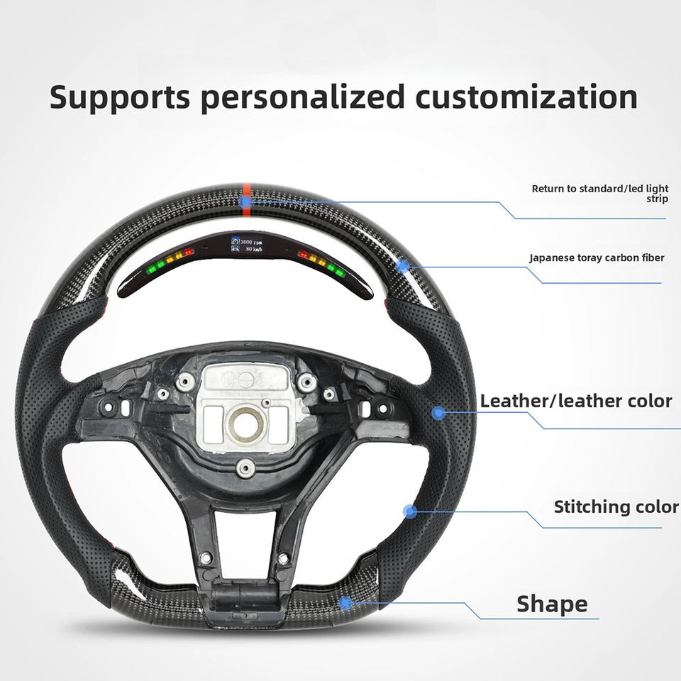 พวงมาลัยรถแข่งทรง D แบบคาร์บอนไฟเบอร์หุ้มหนัง พร้อมไฟ LED ฟังก์ชั่นสั่นสะเทือนและระบบทำความร้อน