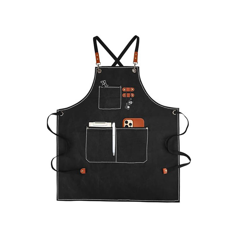ผ้ากันเปื้อนสำหรับเชฟชายและหญิงมีกระเป๋าขนาดใหญ่ทำจากหนังปรับเอวได้