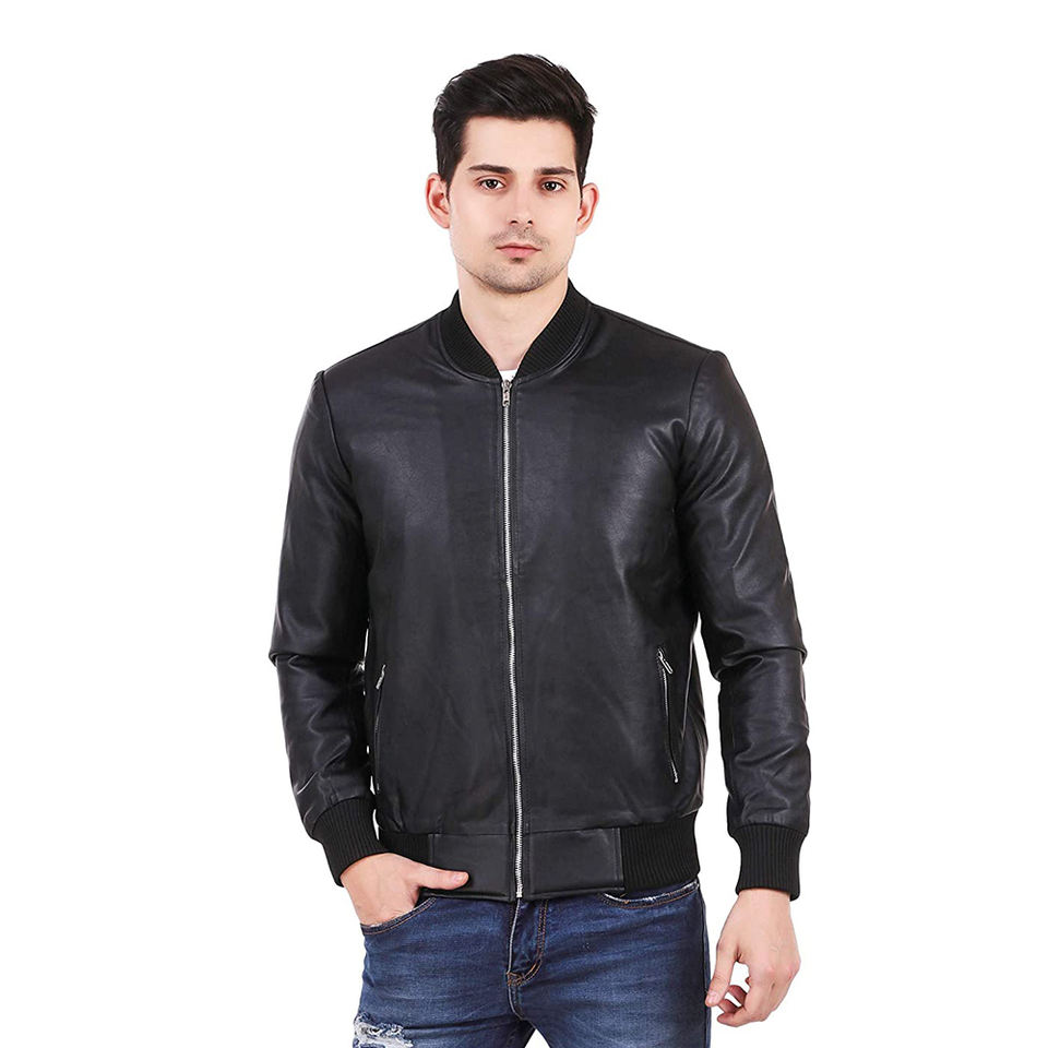 หนังทำแจ็คเก็ตรถมอเตอร์ไซด์เครื่องบินทิ้งระเบิดสไตล์คอตั้งซิปขึ้นแขนเสื้อหนังฤดูหนาวแจ็คเก็ต