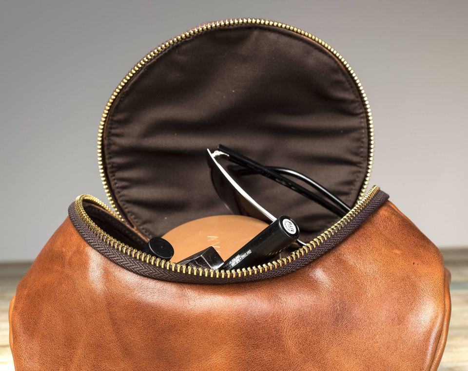 กระเป๋าเครื่องสำอางหนังแต่งหน้ามีซิปกระเป๋าแต่งหน้าหนังม้าบ้า LCB-051