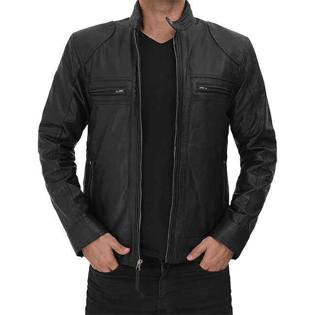 แจ็คเก็ตหนังผู้ชาย OEM ออกแบบเองได้ แจ็คเก็ตหนัง PU เท่ห์ๆ สไตล์วินเทจสำหรับผู้ชาย