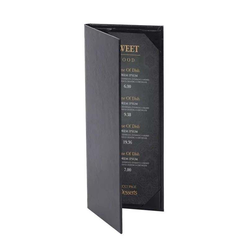 หนังผู้ถือเมนูกันน้ําอาหารค่ําผู้ถือเมนูสําหรับร้านอาหารโรงแรมบาร์ค็อกเทลเมนูครอบคลุม 4.25x11 นิ้ว 2 มุมมอง