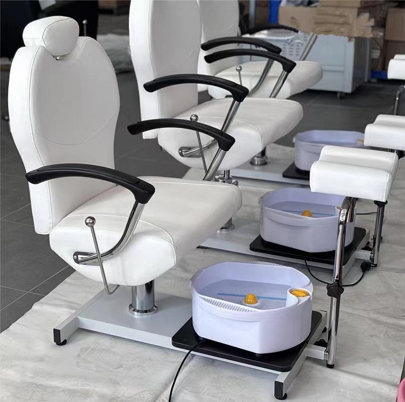 เก้าอี้ทำเล็บดีไซน์ทันสมัยหุ้มหนัง สำหรับร้านเสริมสวย ร้านตัดผม พร้อมอ่างแช่เท้าแบบพกพา เฟอร์นิเจอร์ร้านทำเล็บ