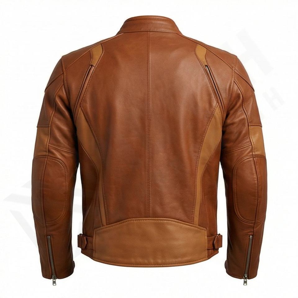 เสื้อแจ็คเก็ตมอเตอร์ไซค์หนังสำหรับผู้ชาย แบบคาเฟ่เรเซอร์ ออกแบบโลโก้ได้ตามต้องการ พร้อมเกราะป้องกัน CE ชุดลำลองเพื่อความปลอดภัย สีสันปรับแต่งได้