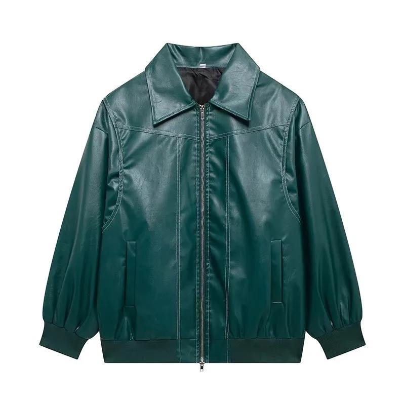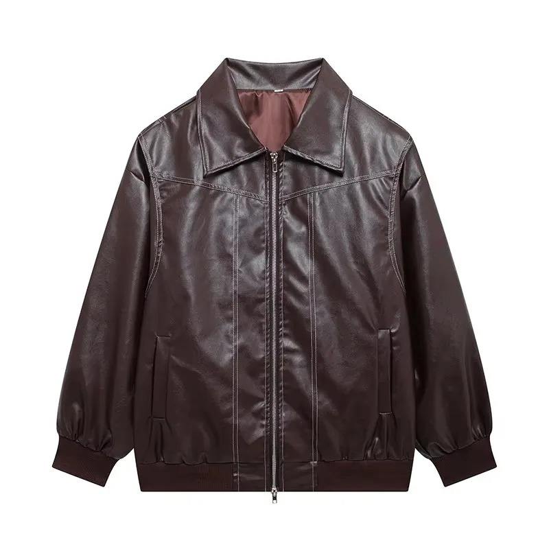 แจ็กเก็ตหนังแขนยาวคอปกสไตล์มอเตอร์ไซต์สำหรับผู้หญิงฤดูใบไม้ร่วงแบบใหม่มีซิปตกแต่งเลียนแบบด้วยวัสดุยัดไส้ทำจากผ้าฝ้าย