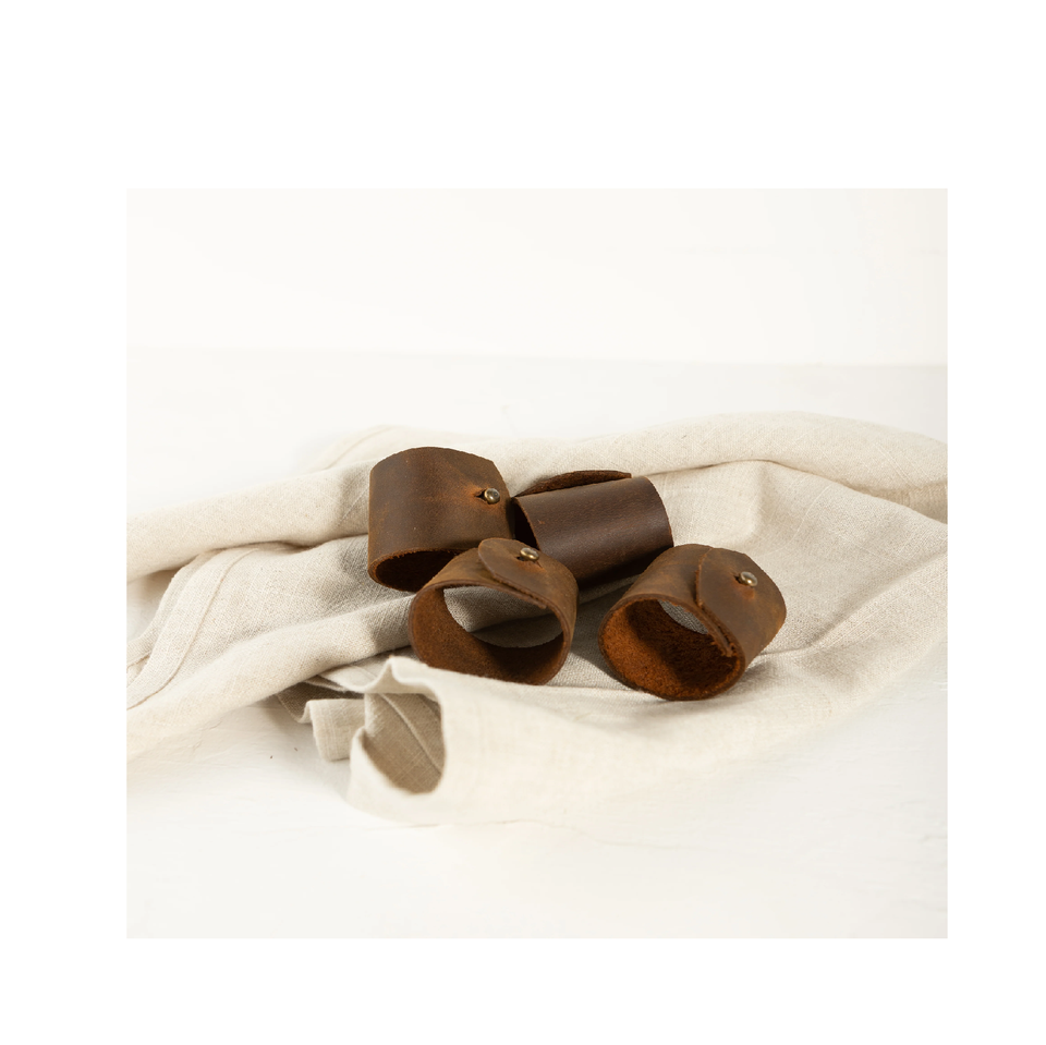 ห่วงรัดผ้าเช็ดปากทำจากหนังสีน้ำตาลทรงกลมมีห่วงรัดผ้าเช็ดปากสีน้ำตาลสีน้ำตาลสำหรับปรับขนาดได้