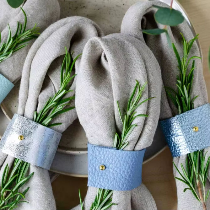 ชุดแหวนรองผ้าเช็ดปากหนัง สำหรับโต๊ะคริสต์มาสหรือโต๊ะงานแต่งงาน