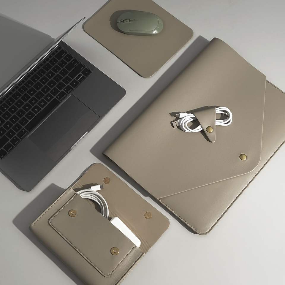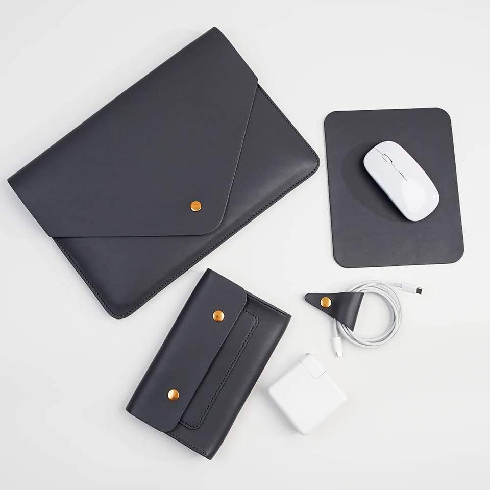ชุดอุปกรณ์สำนักงานหนัง - ซองใส่แล็ปท็อป, ที่เก็บสายชาร์จ/หูฟัง และแผ่นรองเมาส์ สำหรับการทำงานประจำวัน, ชุดอุปกรณ์สำนักงานสำหรับใช้ในออฟฟิศ