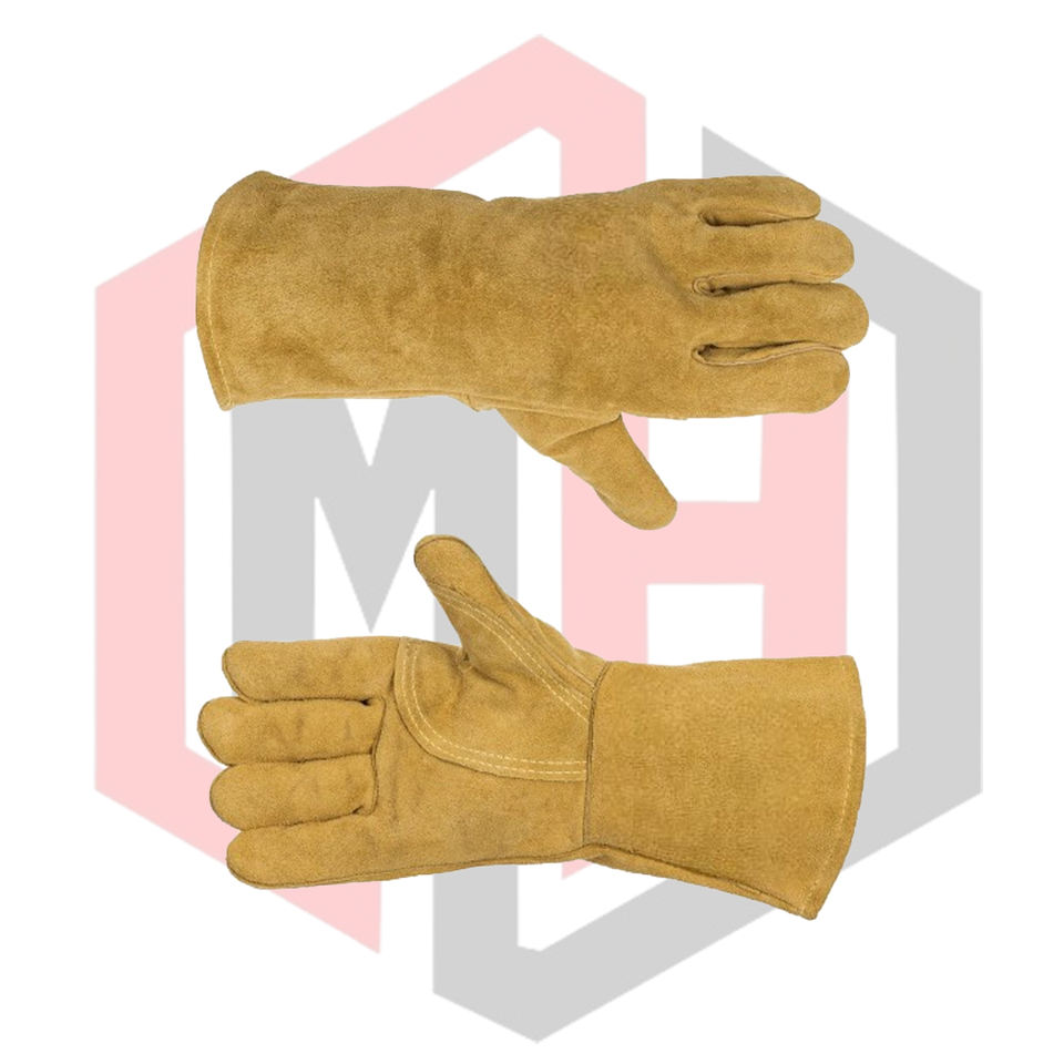Leather Palm Welding Gloves Industrial Safety Firefighting Split Leather Fire Protective Knit Wrist 14 Inch Breathable Gloves