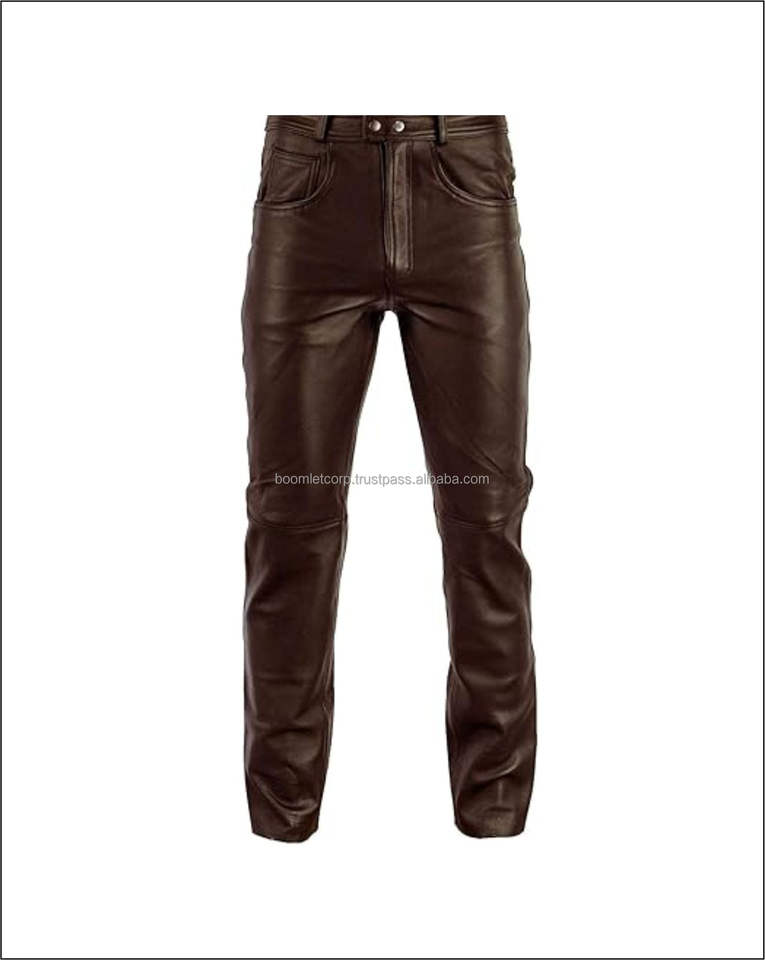 กางเกงหนังแท้ หนังวัวแท้ แฟชั่นผู้ชาย สไตล์ไบค์เกอร์ บอมเบอร์ คาวบอย คุณภาพสูง ลำลอง เอวสูง ทรงตรง สีพื้น ติดกระดุม ผ้าไม่ทอ