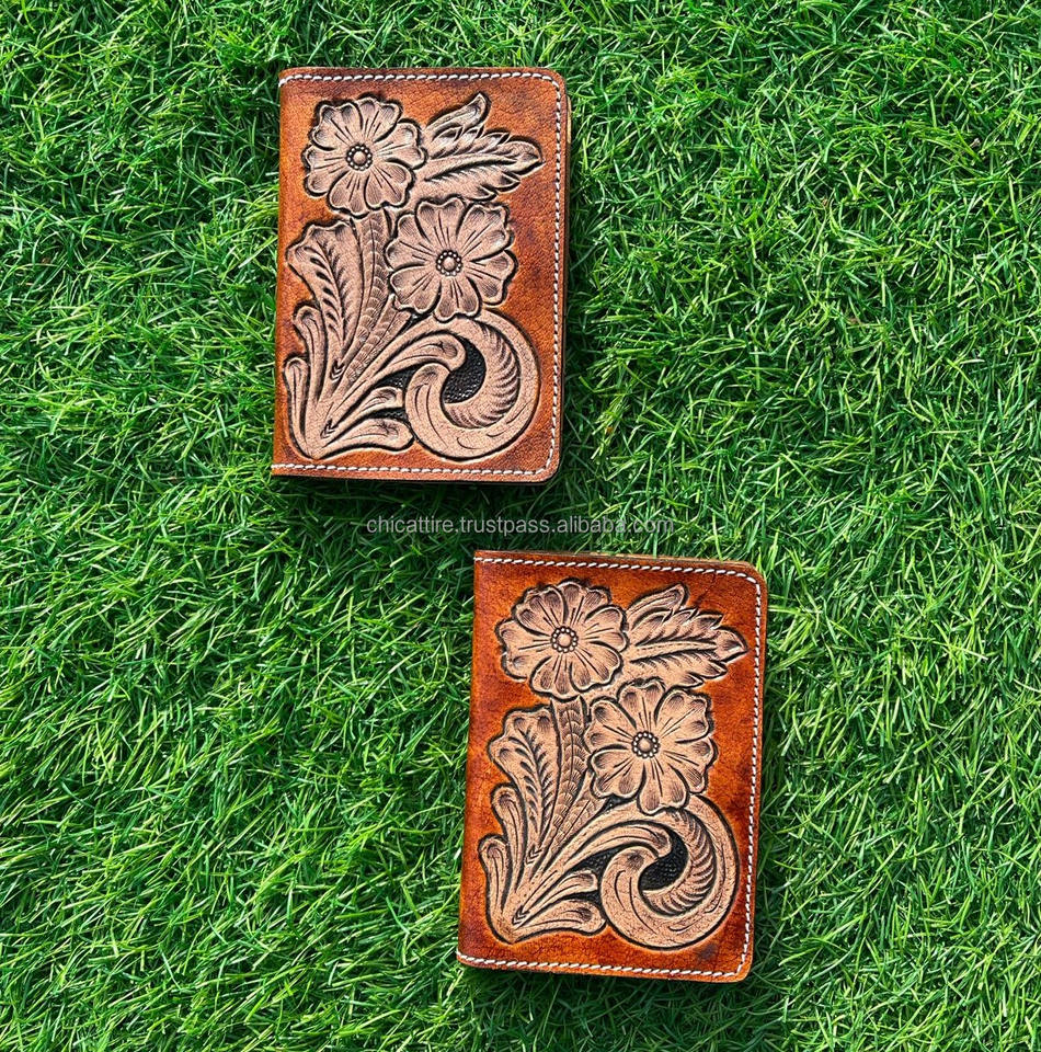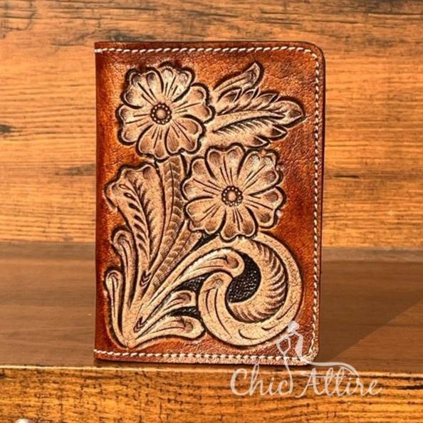 Leather Passport Holder New Designer Hand Tooled Carving Western Style Hot Sale Unique Design Multi Function Travel Accessories