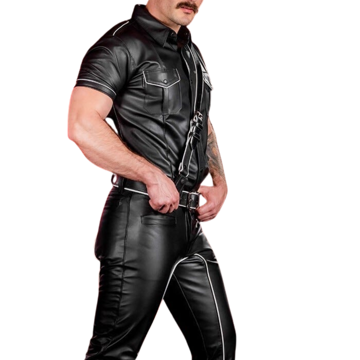 Leather Piped Uniform Pant White High Quality White Leather Pants with Sleek Piping Design for A Bold and Trendy Appearance
