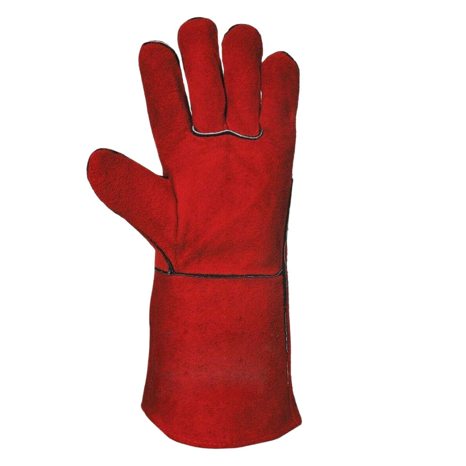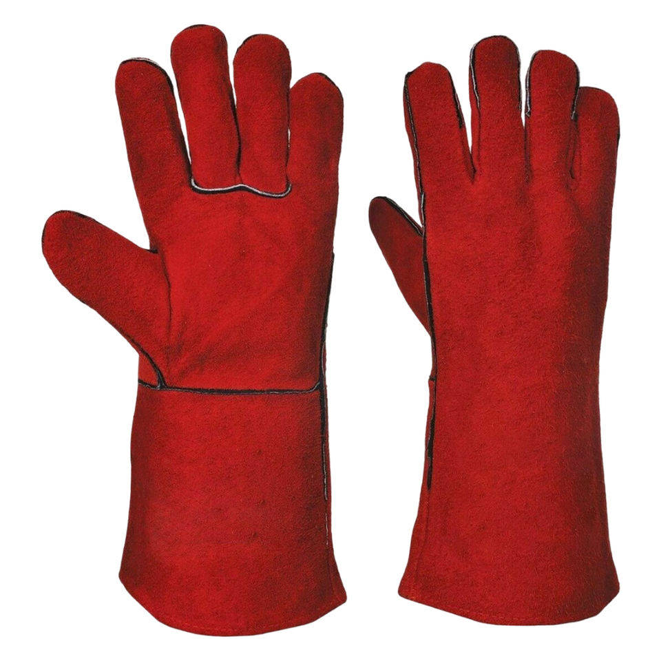 ถุงมือช่างเชื่อมหนังสีแดงคุณภาพดีที่สุดป้องกันการตัดกันลื่นกันความร้อนคุณสมบัติความปลอดภัยหนังวัวแยก