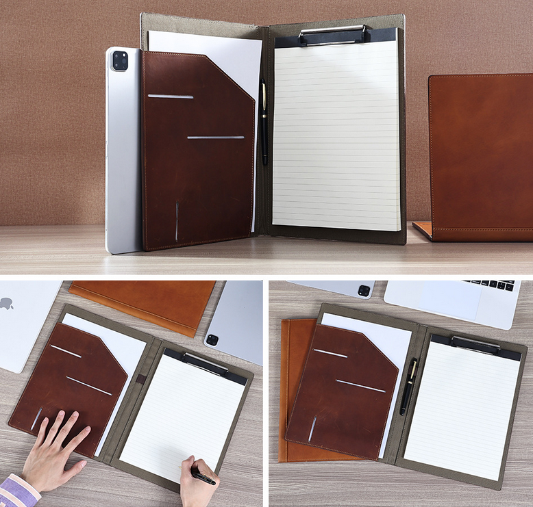 แผ่นหนังแบบพับได้สำหรับ A4สมุดบันทึกขนาดตัวอักษรเคสหนังสำหรับ iPad Pro 12.9ของขวัญสำนักงานสำหรับผู้หญิง/ผู้ชาย