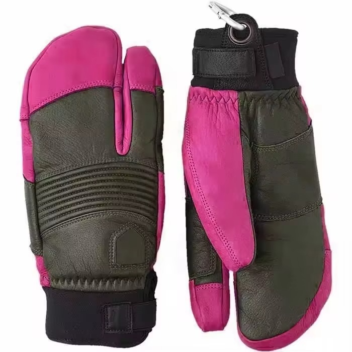 ถุงมือสกีหนังสำหรับสวมใส่ในฤดูหนาวเพื่อป้องกันหิมะตกสำหรับสิ่งจำเป็นในการเดินทางสกีพร้อมเบาะบุภายในที่ให้ความอบอุ่น
