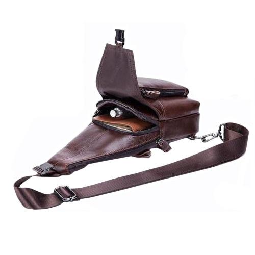 กระเป๋าหนังสลิงกระเป๋าเป้สะพายหลังพร้อมสายเดี่ยวกระเป๋าหนังสะพายข้างของผู้ชายสีน้ำตาล