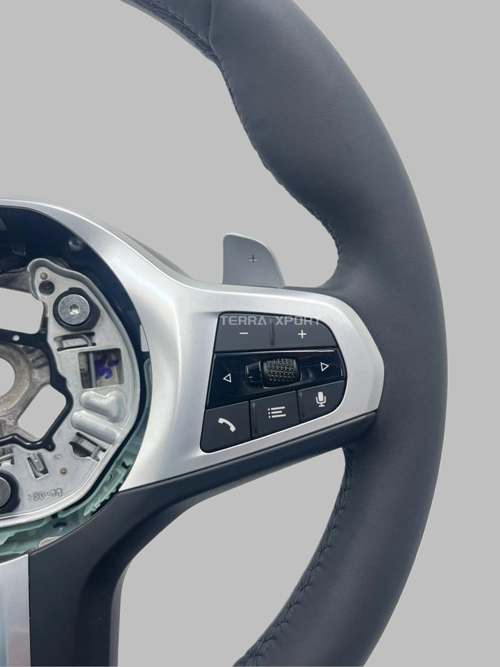 พวงมาลัยกีฬาหนังแท้ผสมคาร์บอนไฟเบอร์แบบกำหนดเองสำหรับรุ่น X3-X7 G01-G90 | โลหะผสมอลูมิเนียมแมกนีเซียม | ฟังก์ชันทำความร้อน