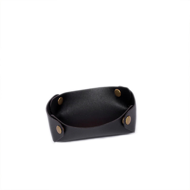 ถาดเก็บของหนังทรงวงรีสำหรับวางบนโต๊ะ สีดำ พับได้ ที่เก็บเครื่องประดับและกุญแจ แบบตั้ง ไม่มีฝาปิด