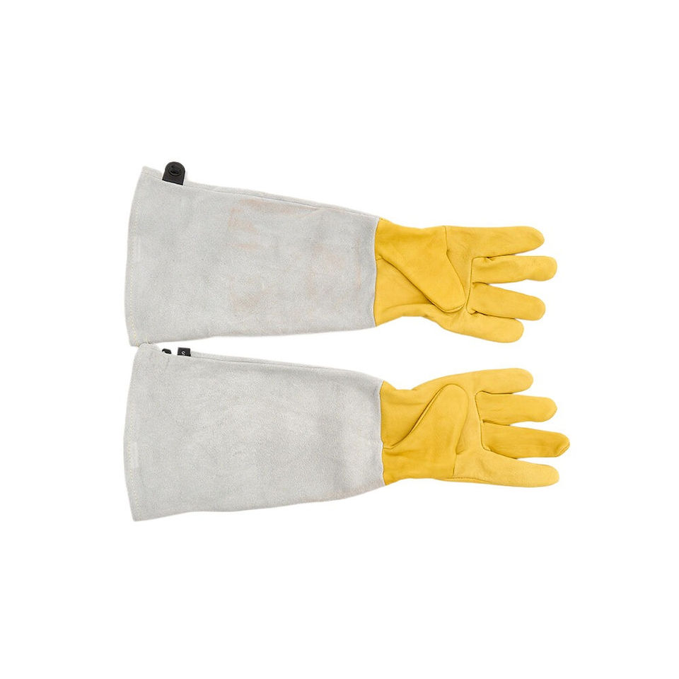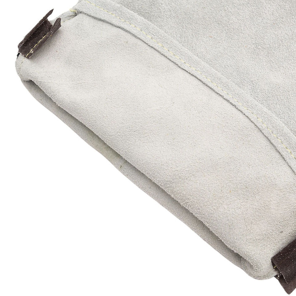 ถุงมือหนังสำหรับงานเชื่อม TIG สีขาว แบบ OEM ไม่มีซับใน ทรงนิ้วโป้งแบบปีก ข้อมือยาว ทำจากหนังวัวแยกชั้น ถุงมือเชื่อม TIG