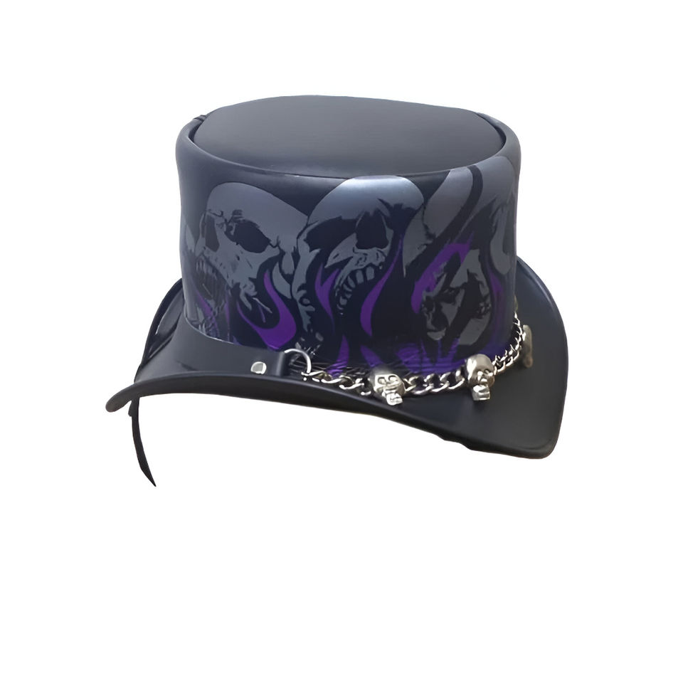 หมวกหนังทรงสูงสไตล์โกธิค สตีมพังก์ คอสเพลย์ สำหรับงานฮาโลวีน ตกแต่งด้วยกระดุมรูปหัวกะโหลก ลายเปลวไฟ เหมาะสำหรับงานปาร์ตี้ คอสเพลย์ งานเทศกาล