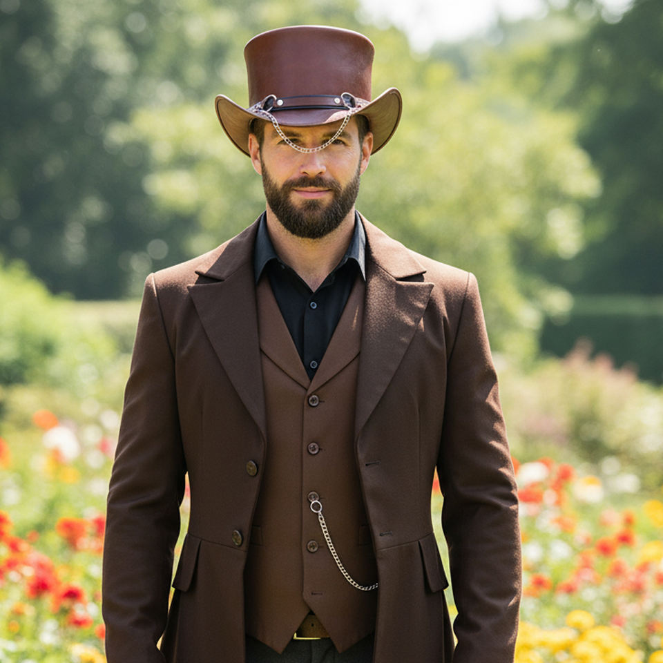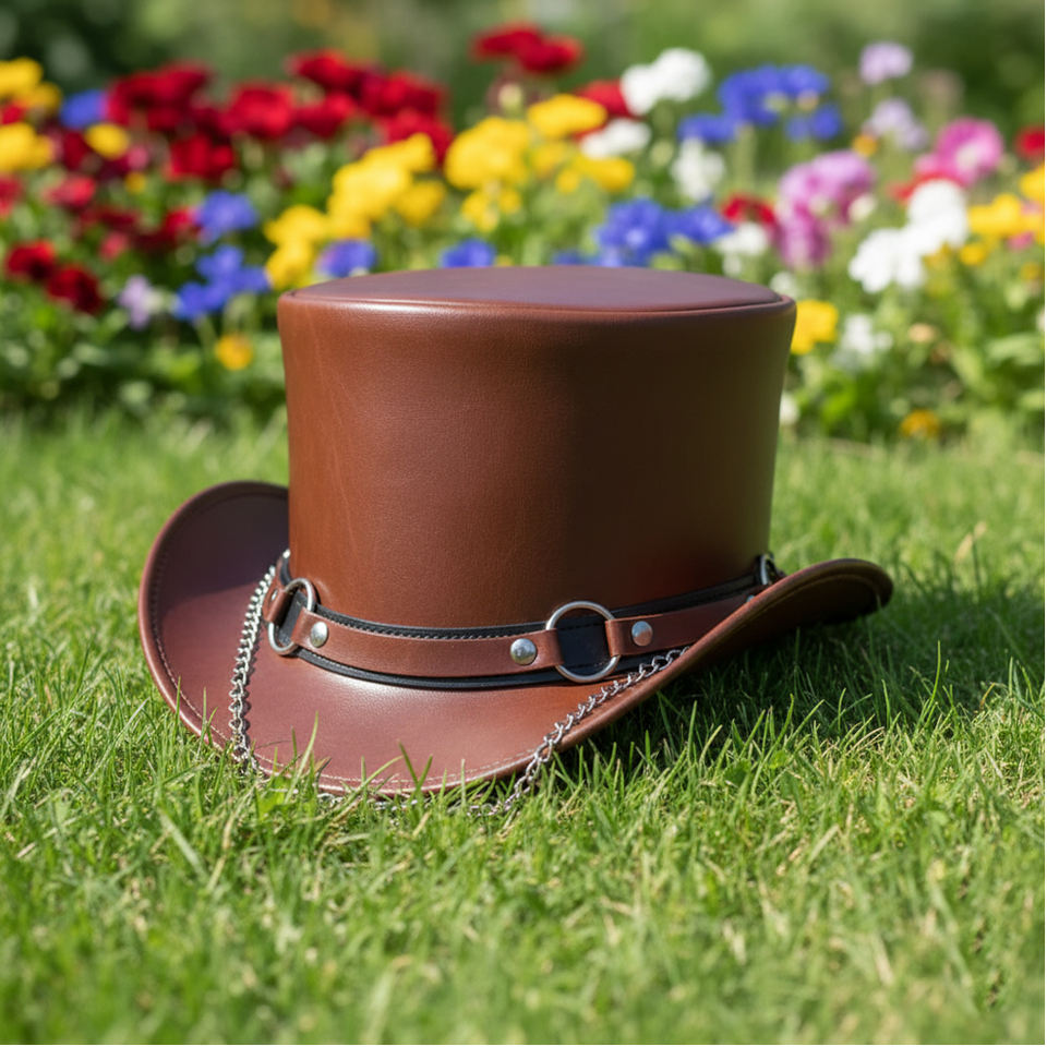 หมวกหนังทรงสูง สไตล์สตีมพังก์ ดีคก์สัน ไบค์เกอร์ ไรเดอร์ หมวกโกธิค สตีมพังก์ หมวกหนังทรงสูงทำมือ สตีมพังก์ คอสเพลย์