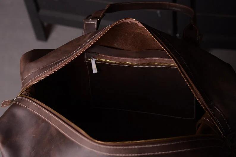 กระเป๋าเดินทางหนังสไตล์เรโทร กระเป๋าถือขนาดใหญ่ ใส่ของได้เยอะ พกพาสะดวก กระเป๋าเดินทางขึ้นเครื่องบินได้ มีช่องใส่พาสปอร์ตด้านนอก ซิปทำมือ