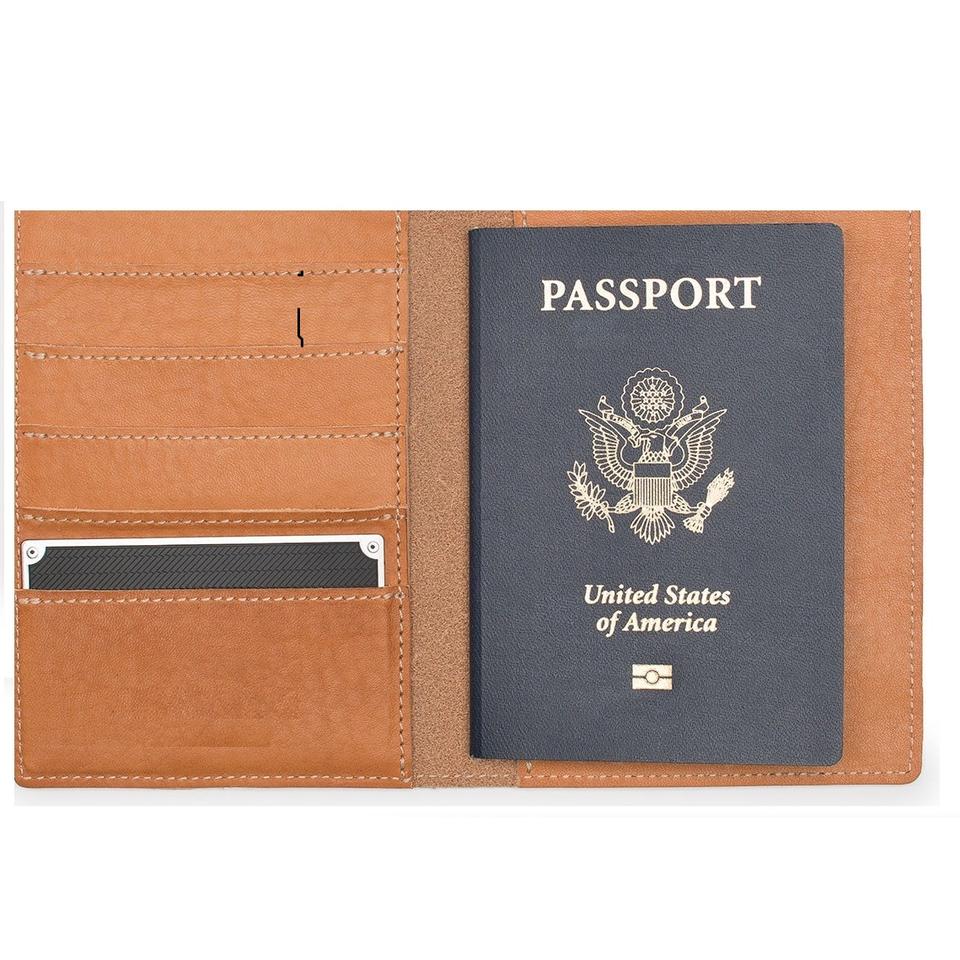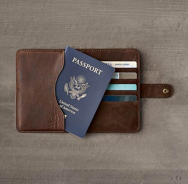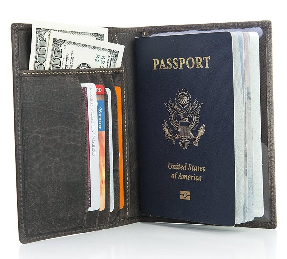 ที่ใส่หนังสือเดินทางเวลาเดินทางทำจากหนัง