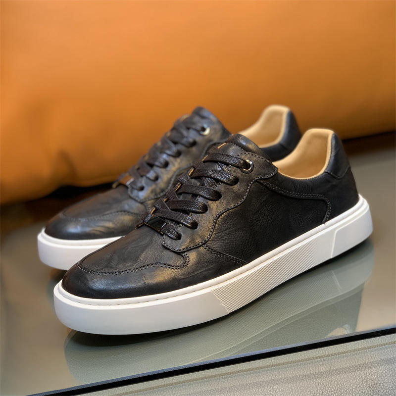 รองเท้าหนังทรงบอร์ดสำหรับผู้ชาย หนังวัวขัดมือ ดีไซน์หรูหรา สวมใส่สบาย ปิดนิ้วเท้า ทรงหุ้มข้อ เพิ่มความสูง สีเทา