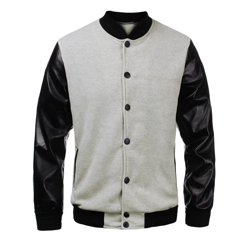 เสื้อแจ็กเก็ตหนังสีดำสีแดงปักโลโก้และป้ายทีมวิทยาลัยแจ็คเก็ตสำหรับผู้ชาย