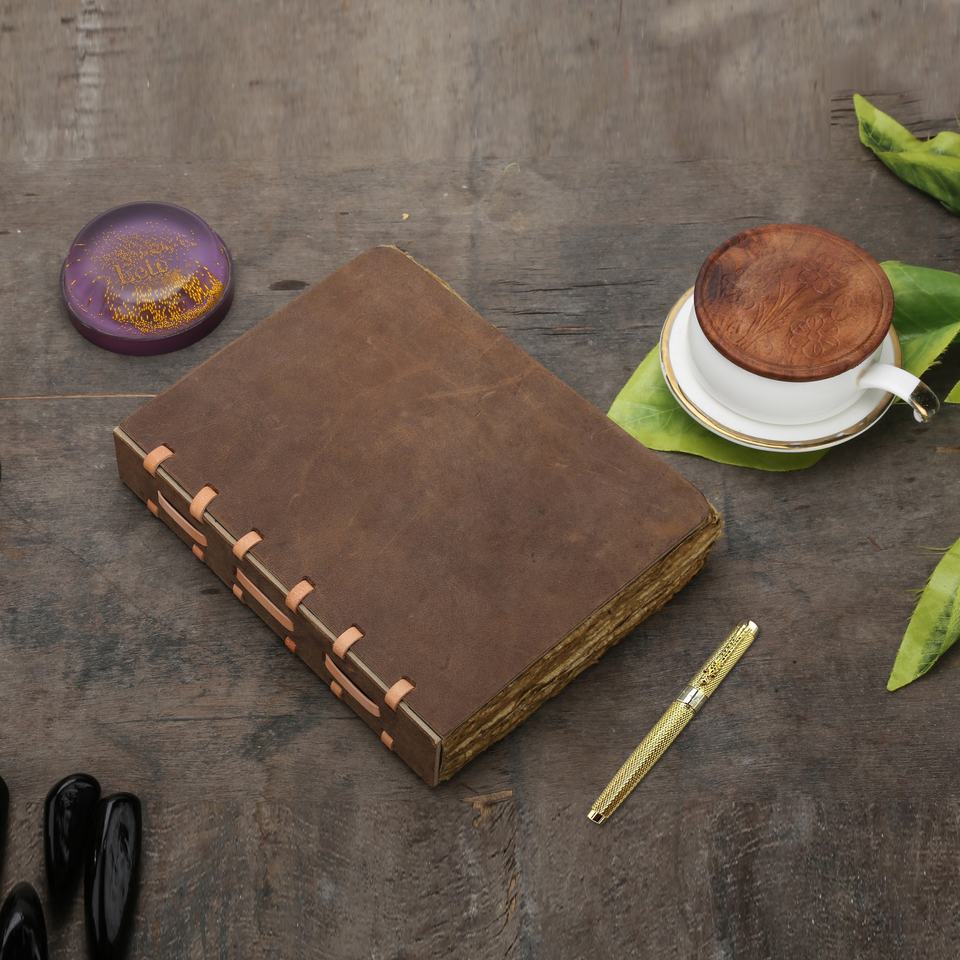สมุดบันทึกการเดินทางแบบย้อนยุคทำด้วยมือด้วยหนังแนววินเทจสมุดโน้ตสีน้ำปกแข็งสุดพิเศษสมุดสไตล์ย้อนยุค