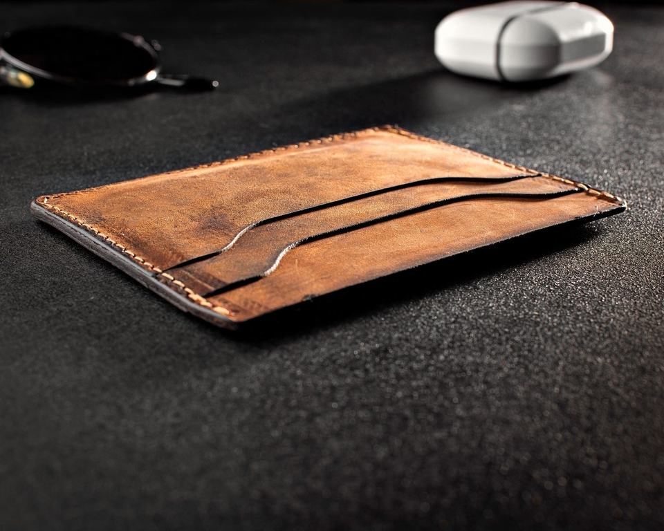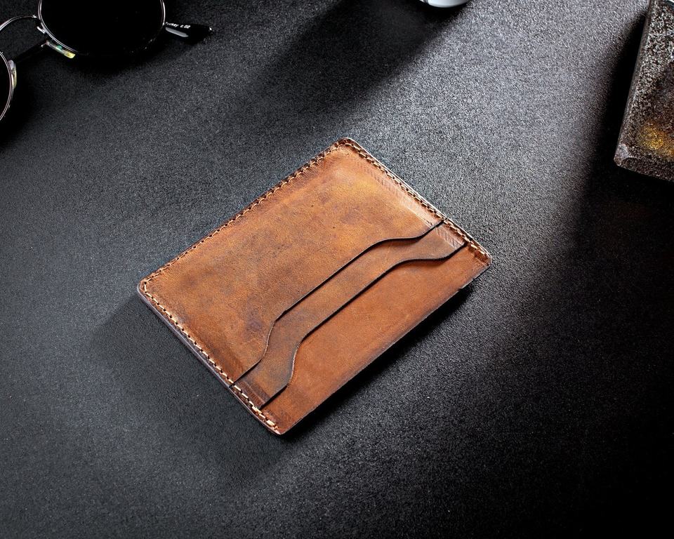 กระเป๋าสตางค์หนังสำหรับผู้ชาย ดีไซน์มินิมอล ใส่บัตรธุรกิจ ทรงบาง ทำมือ แบบหนีบ ปิดได้ วินเทจ ใส่บัตรเครดิต รุ่น LCR-0075