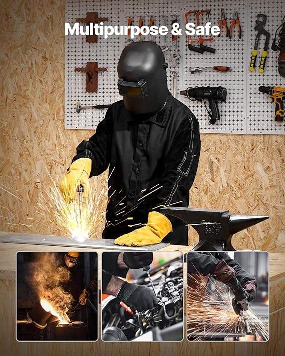 เสื้อแจ็คเก็ตหนังสำหรับงานเชื่อม แจ็คเก็ตทำงานแบบหนา ทนไฟ ป้องกันร่างกาย สำหรับช่างเชื่อม สำหรับผู้ชาย