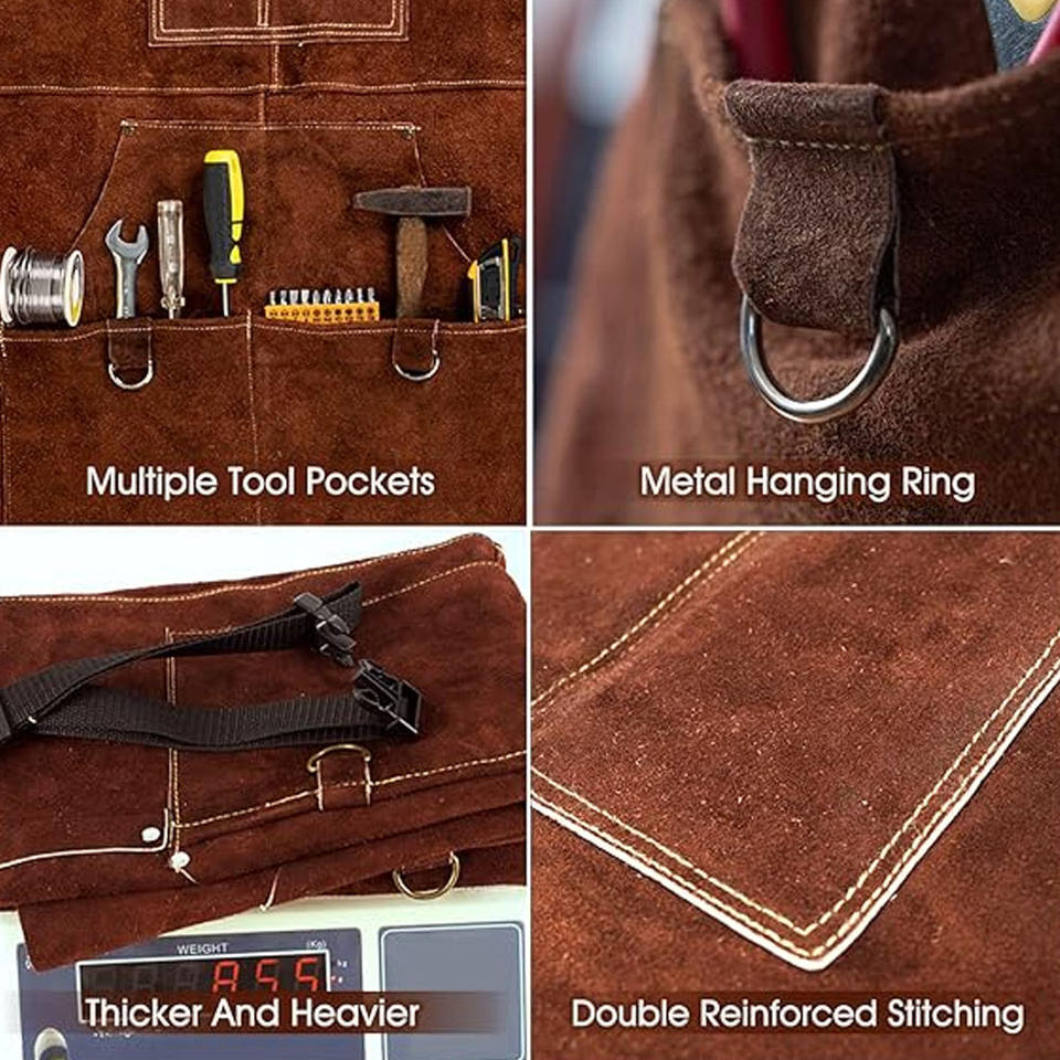 ผ้ากันเปื้อนงานเชื่อมงานหนังมี6ช่องผ้ากันเปื้อนสำหรับช่างเชื่อมหนังวัวทนความร้อนทนไฟช่างตีเหล็กทนทาน