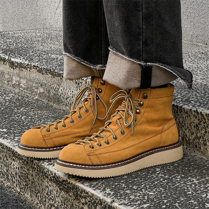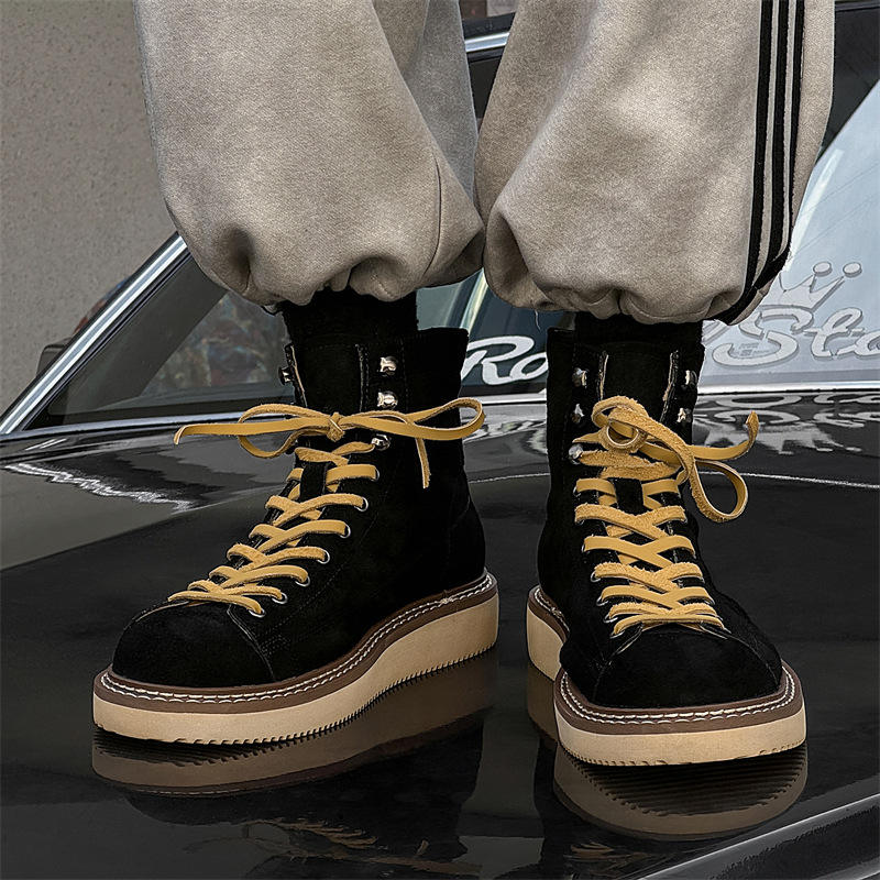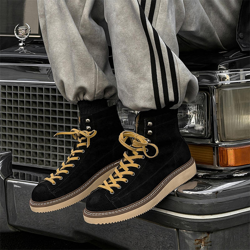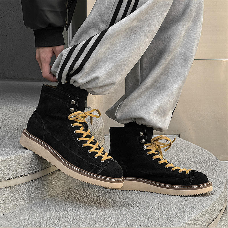 รองเท้าบูทหนังสั้นทันสมัยและใช้งานได้หลากหลาย รองเท้าบูทหนังแบบผูกเชือก สไตล์ใหม่สำหรับฤดูหนาว กันลื่นและกันน้ำ รองเท้าบูททำงานสำหรับผู้ชาย
