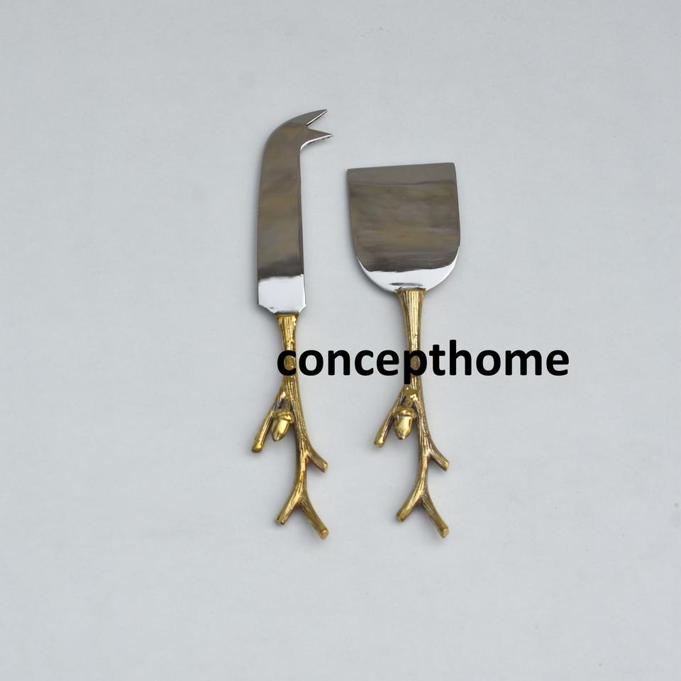 Leave Designer Cheese Knife Set For Homes, Modern Shiny Golden Finishing Metal Tableware for Hotels & Restaurants