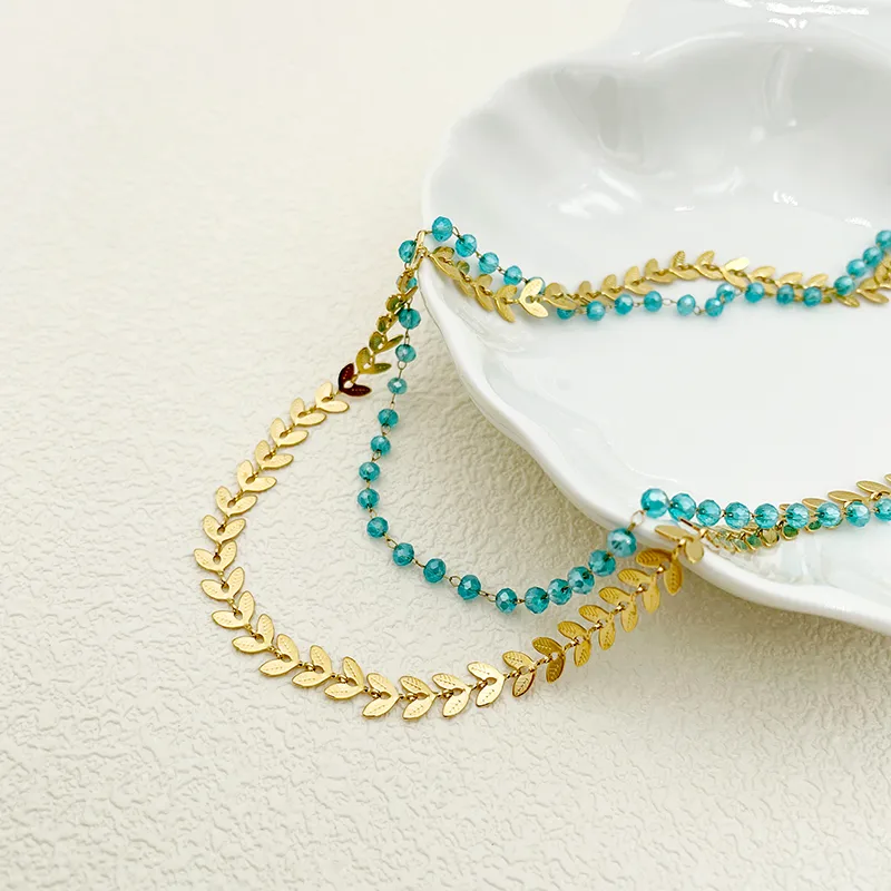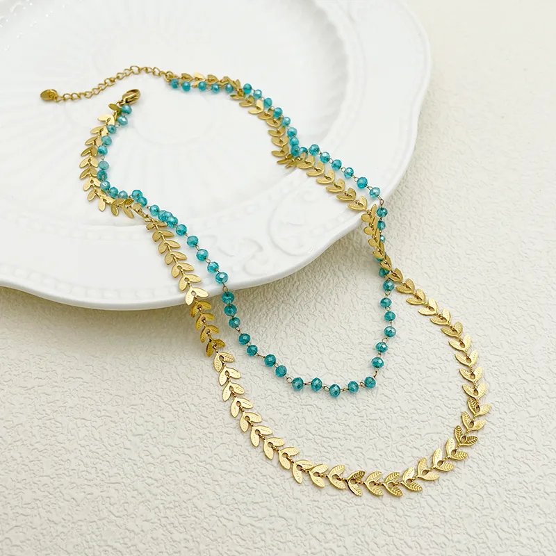 สร้อยคอแบบสองชั้นสำหรับทุกเพศ วัสดุสแตนเลส 304 กันน้ำ ชุบทอง 18K พร้อมสายลูกปัด