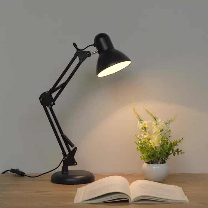 โคมไฟตั้งโต๊ะแบบหนีบโลหะสไตล์อเมริกัน ป้องกันดวงตา ใช้ในห้องนอน สำนักงาน ห้องอ่านหนังสือ สำหรับนักเรียน แบบเสียบปลั๊ก แขนยาว
