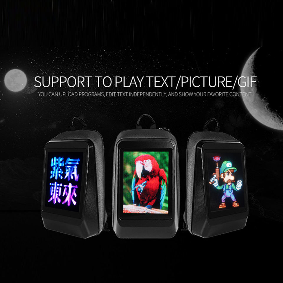 กระเป๋าเป้สะพายหลัง LED หน้าจอขนาดเล็กจากโรงงานโปรโมชันแสงสนามขนาดเล็กในนามของการขี่กระเป๋าเป้สะพายหลัง LED โฆษณาแบบพกพาบลูทูธภาษาอังกฤษ