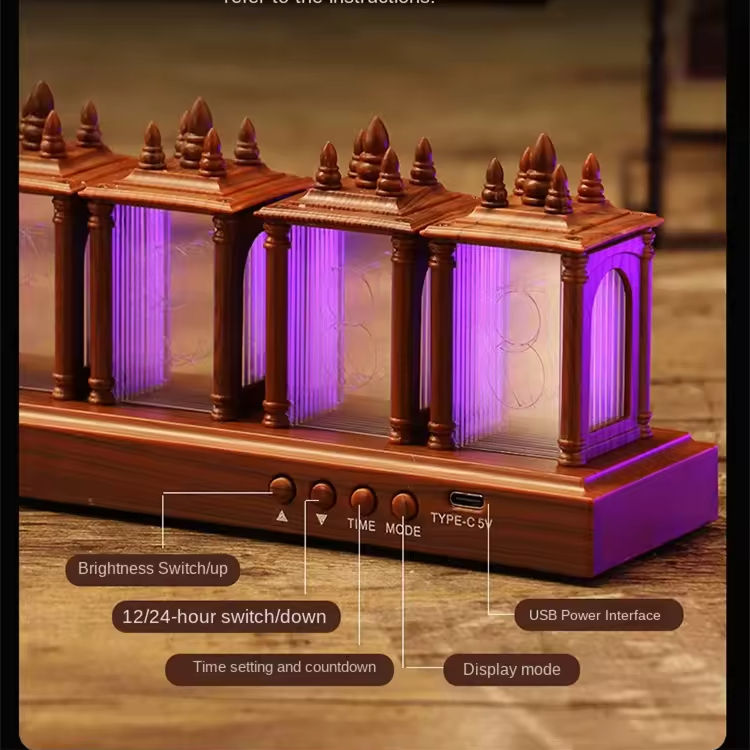 นาฬิกาดิจิตอล LED แบบนิกซี่ นาฬิกาตั้งโต๊ะอิเล็กทรอนิกส์สไตล์เรโทร นาฬิกาตกแต่ง RGB นาฬิกาสไตล์โบราณสร้างสรรค์ ไฟกลางคืน