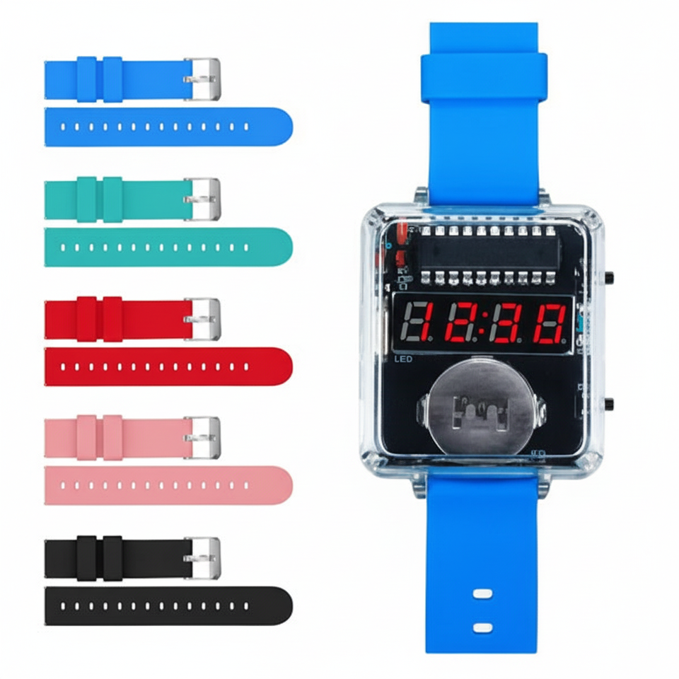 ชุดนาฬิกาอิเล็กทรอนิกส์ LED DIY นาฬิกาหลอดดิจิตอลพร้อมสายซิลิโคนสไตล์สปอร์ตสำหรับทุกเพศตัวเรือนพลาสติกแบบหัวเข็มขัด