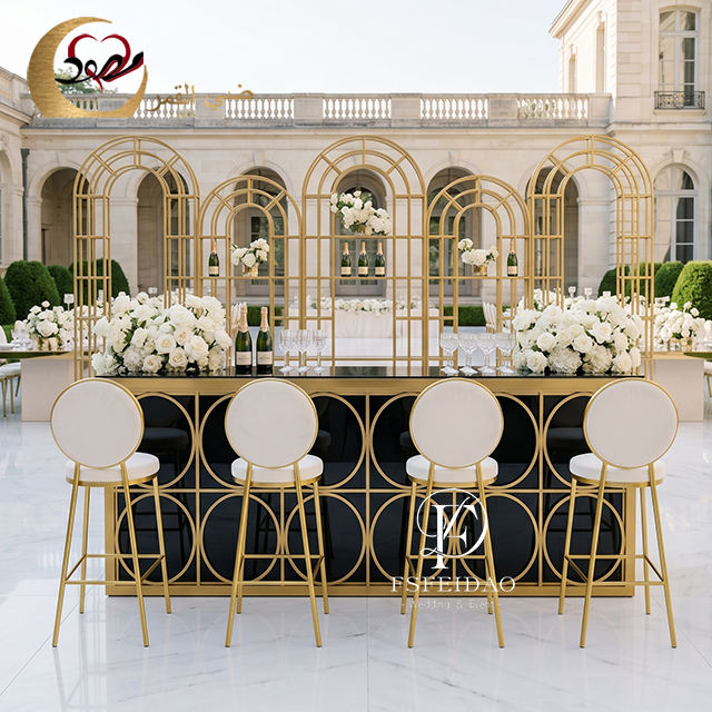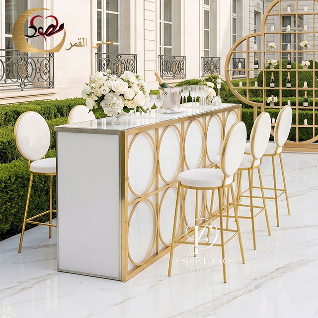 เคาน์เตอร์บาร์สแตนเลสพร้อมไฟ LED สำหรับห้องเก็บไวน์ โรงแรม ร้านอาหาร บาร์ ร้านค้า ทันสมัย ใช้ได้ทั้งในร่มและกลางแจ้ง พร้อมโต๊ะสำหรับไวน์และเบียร์