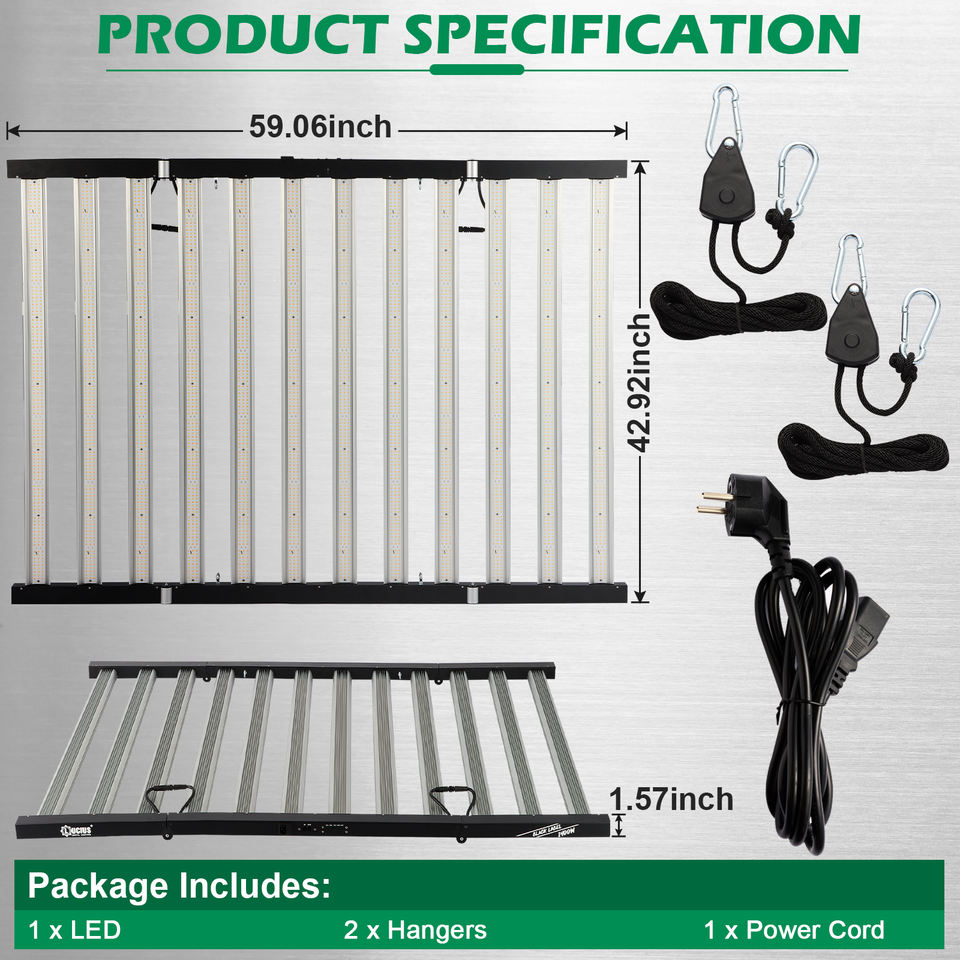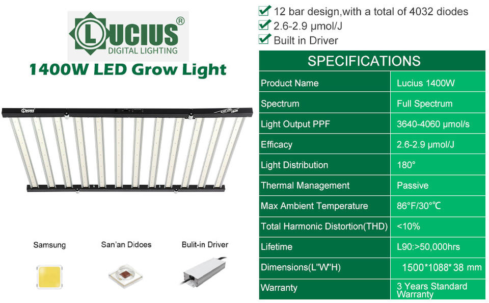 ไฟปลูกต้นไม้ LED 1400วัตต์หรี่แสงพีอี: 2.6-2.9 umol/j โคมไฟปลูกต้นไม้ IP65แสงสเปกตรัมเต็มรูปแบบเรือนกระจกสวนผักในร่ม