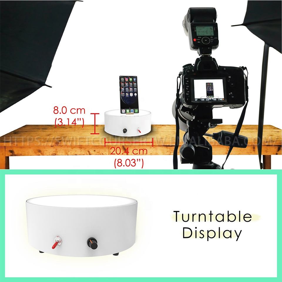 White Electric Motorized Rotating Turntable Display Stand with LEDColor