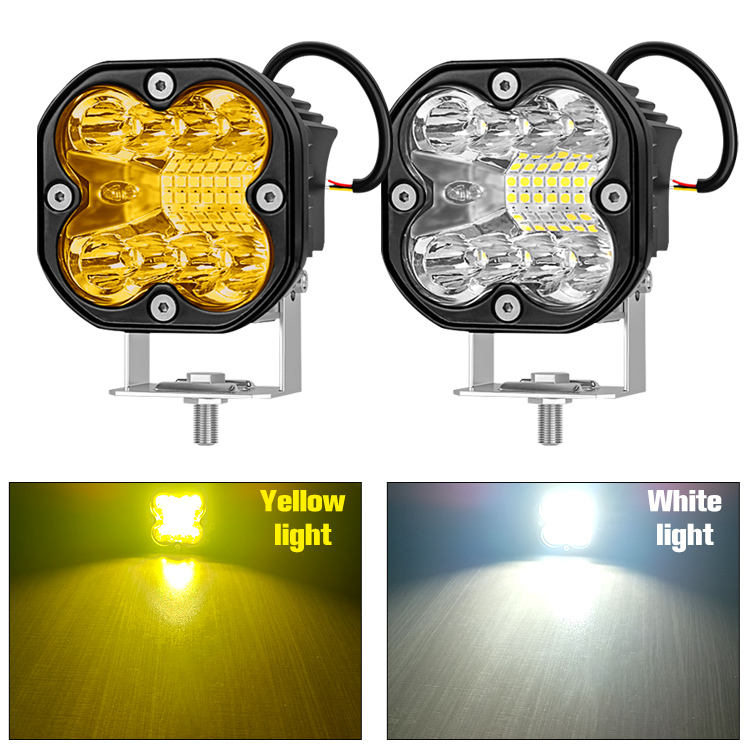 ไฟ LED สำหรับรถจักรยานยนต์66W ไฟตัดหมอก LED 3นิ้วสีขาวสีเหลืองอำพันหลอดไฟ LED 4x4