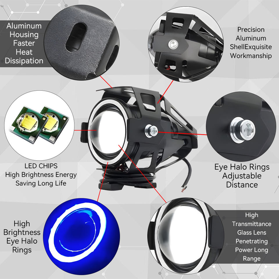 ไฟสปอตไลท์มอเตอร์ไซค์ LED U7ไฟขับขี่ขนาดเล็ก12V 30W 6500LM อุปกรณ์เสริมอเนกประสงค์ไฟตัดหมอก