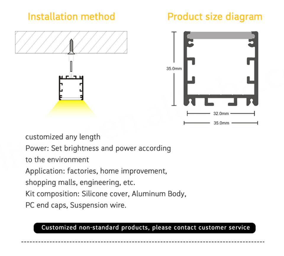 โปรไฟล์อะลูมิเนียมสำหรับแถบไฟ Xrzlux โปรไฟล์ 12W/M แบบติดเพดาน รูปตัวยู แถบอะลูมิเนียมสำหรับไฟ