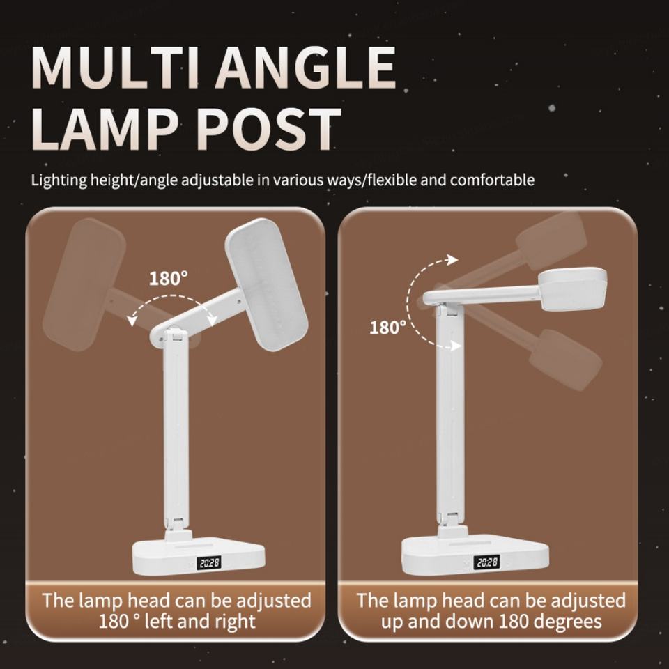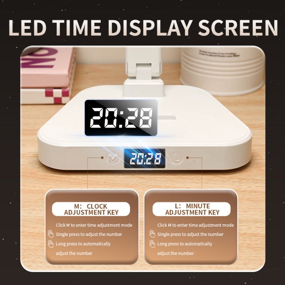 หลอดไฟ LED แบบชาร์จไฟได้ 1200mA โคมไฟตั้งโต๊ะนาฬิกา ที่วางปากกา ป้องกันดวงตา โคมไฟอ่านหนังสือแบบสัมผัส พร้อมตัวตั้งเวลา สำหรับนักอ่าน