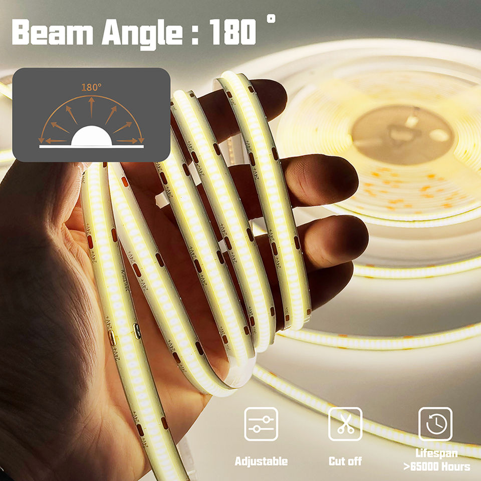ไฟแอลอีดีแบบเส้น 20 เมตร 10 เมตร 15 เมตร ดีซี 24 โวลต์ ไฟแอลอีดีแบบเส้นยาวพิเศษ 384 หลอด/เมตร 480 หลอด/เมตร 600 หลอด/เมตร ไม่ลดแรงดันไฟฟ้า ไฟแอลอีดีแบบเส้น COB 24 โวลต์
