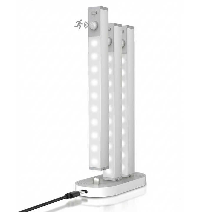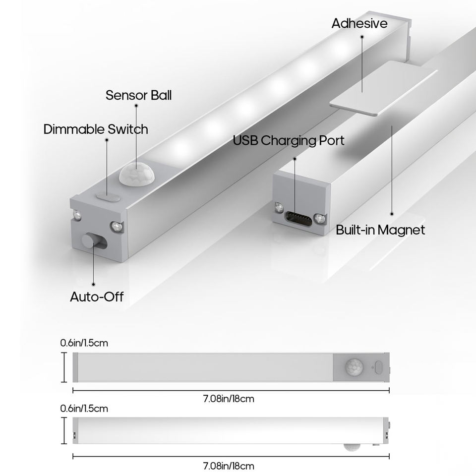 ไฟตู้ LED สมัยใหม่ พร้อมแท่นชาร์จไร้สาย ขนาด 7 นิ้ว โคมไฟแบบชาร์จซ้ำได้ พร้อมเซ็นเซอร์ตรวจจับความเคลื่อนไหว ปรับความสว่างได้ ใช้ในตู้เสื้อผ้าภายในบ้าน