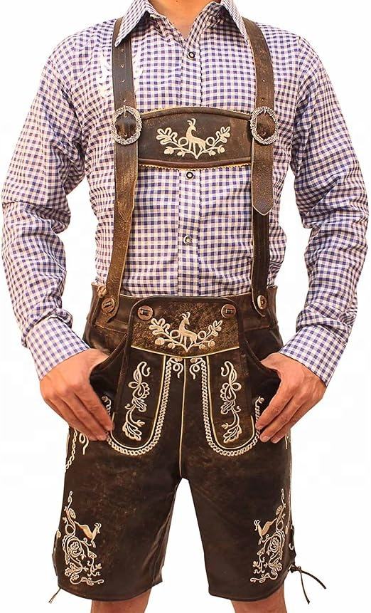 กางเกงขาสั้นหนังกลับปักลายสำหรับผู้ชาย เอวกลาง หนังกลับสไตล์บาวาเรียน สำหรับงานเทศกาลอ็อกโทเบอร์เฟสต์ กันลม ระบายอากาศได้ดี